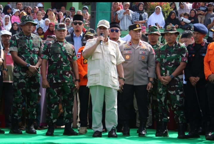 Menhan Disambut Danrem 032/Wbr Kunjungi Korban Erupsi Gunung.
