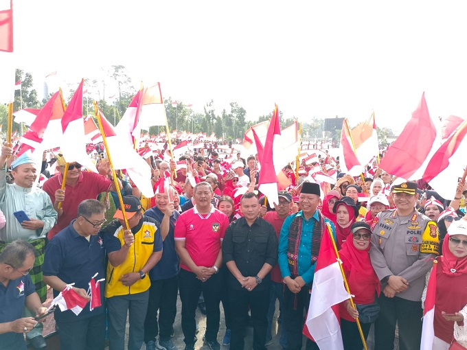Parade Bendera Merah Putih tahun 2024 dalam rangka pencanangan gerakan 10 juta Merah Putih dikibarkan di seluruh wilayah Provinsi Riau berlangsung.