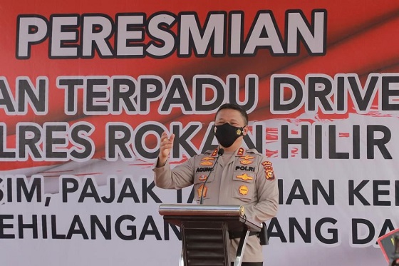Kapolda Riau Irjen Agung Setya Imam Effendi meresmikan layanan Drive Thru terpadu di Mapolres Rohil, Rabu (13/10/2021). Drive Thru terpadu yang menjadi terobosan Polres.