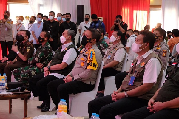 Kapolda Riau Riau Irjen Pol Agung Setia Imam Effendi meresmikan Gedung Vaksin Center sekaligus meninjau pelaksanaan vaksin massal Polres Kepulauan Meranti di Polsek Tebing.