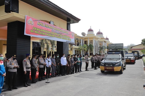 Kapolda Riau Irjen Agung Setya Imam Effendi, memimpin apel gelar pasukan skala besar, untuk pengamanan objek vital nasional di Rokan Hilir.