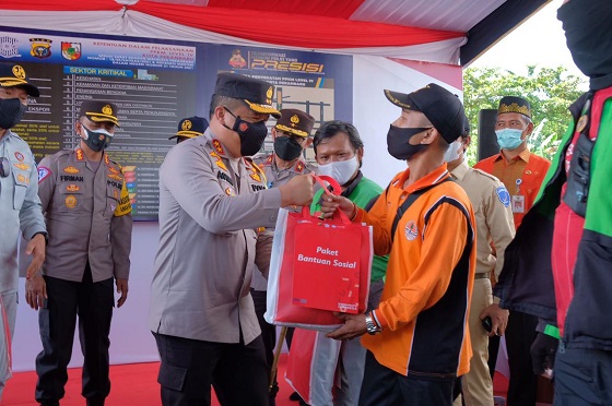 Kakorlantas Polri Irjen Istiono bersama Direktu Utama Jasa Raharja Rivan Purwantori melakukan peninjauan pos penyekatan ruas jalan Jenderal Sudirman - Tuanku.