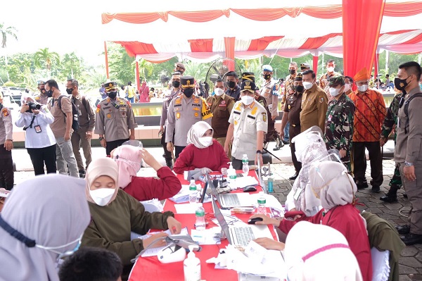 Polda Riau mengoptimalkan pemberian vaksin kepada masyarakat. Salah satu upaya dengan vaksinasi massal..