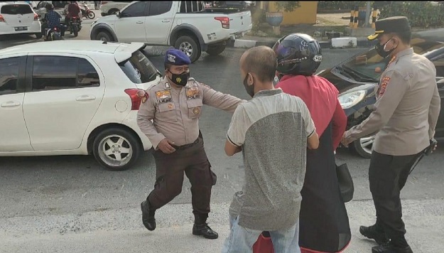 Bernasib baik, ibu hamil yang menggunakan sepeda motor sendirian ditolong dengan sigap oleh petugas kepolisian lalu lintas Direktorat Lalu Lintas Polda.