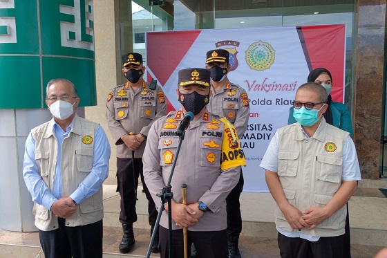 Polda Riau kembali menyelenggarakan vaksinasi massal. Kali ini sasarannya untuk ratusan mahasiswa dengan menggandeng pihak Umri yang berkampus di Kota.