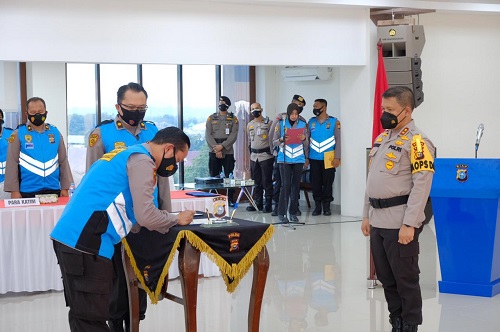 Kapolda Riau, Irjen Pol Agung Setya Imam Effendi Saksikan Pembacaan Sumpah Panitia Dan Peserta Pakta Integritas peserta seleksi SIP TA 2021 di ruang Tribrata lantai lima Gedung Utama Markas Komando Polda.