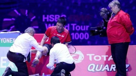 Birmingham- Hendra Setiawan mengalami cedera betis kanan saat menjalani