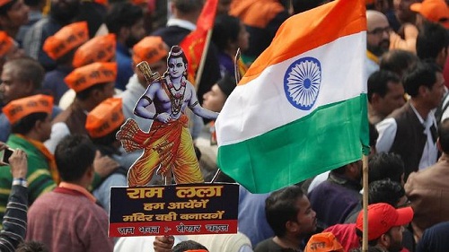 India, pada Minggu (9/12) untuk mendesak pembangunan kuil Ram di atas