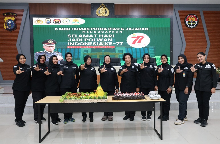 Dalam rangka memperingati Hari Jadi Polwan Republik Indonesia ke-77, Bidhumas Polda Riau menggelar syukuran sederhana di Ruang Media Center Bidhumas Mapolda.