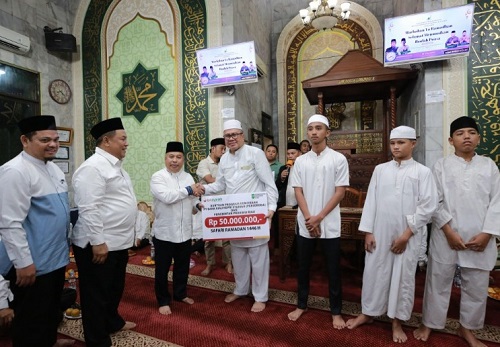 Pengurus dan jamaah Masjid Al Muhsinin, Kapling Kota Pekanbaru, menyambut dengan haru kedatangan Wakil Gubernur Riau SF Hariyanto beserta.