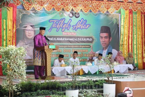 Penjabat Sekretaris Daerah Provinsi (Sekdaprov) Riau, Taufiq OH, menghadiri kegiatan Tabligh Akbar dan doa bersama yang digelar dalam rangka kelulusan siswa-siswi.