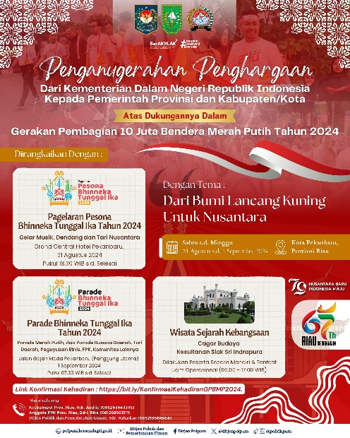 Malam penganugerahan penghargaan dari Kemendagri kepada pemerintah provinsi, kabupaten dan kota tahun 2024 di Pekanbaru berlangsung.