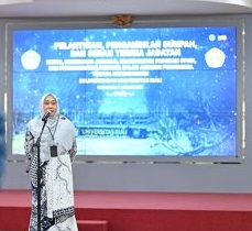 Rektor Universitas Riau (Unri), Prof Dr Sri Indarti, SE, MSi, melantik dan mengambil sumpah, serta serah terima jabatan 13 pejabat baru di Lingkungan.