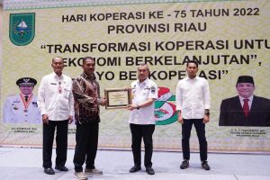 Gubernur Riau (Gubri) Syamsuar menyerahkan piagam penghargaan untuk Koperasi berprestasi pada tingkat Provinsi tahun.