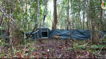 Balai Besar KSDA Riau evakuasi harimau sumatera yang tertangkap di Desa Pulau Muda, Pelalawan..