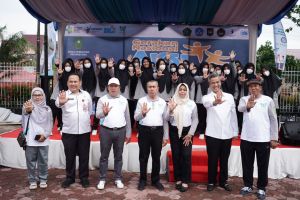 Gubernur Riau (Gubri) Syamsuar menghadiri Gerakan Nasional Aksi Bergizi di SMAN 8 Pekanbaru, Kamis.