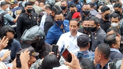 Presiden RI, Jokowi mengunjungi Pasar Wisata Pasar Bawah, Kota Pekanbaru, Rabu (4/1/2023). Ribuan masyarakat Pekanbaru menyambut.