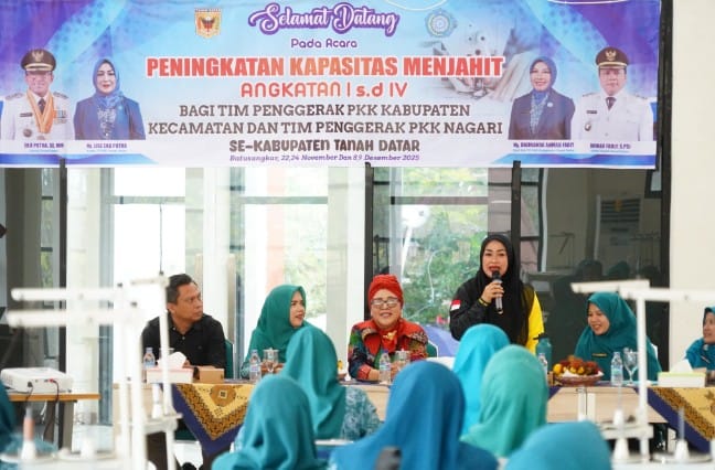 Guna meningkatkan pengetahuan dan upaya pemberdayaan serta menciptakan kaum perempuan yang produktif, TPPKK Tanah Datar yang dimotori Pokja II menggelar pelatihan menjahit.