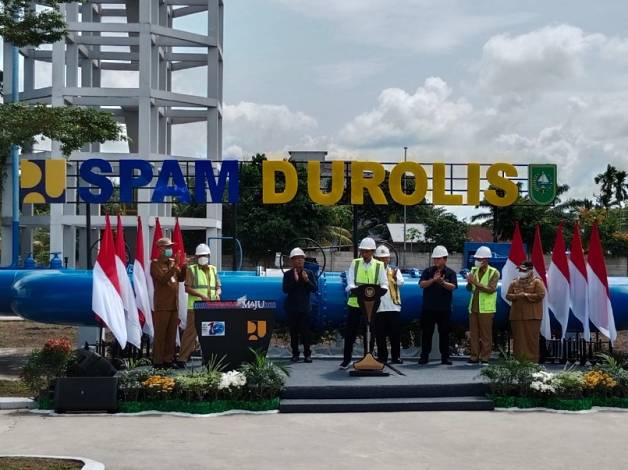 Presiden Joko Widodo melanjutkan kunjungannya ke Riau dengan meresmikan SPAM Regional Dumai, Rokan Hilir, dan Bengkalis (Durolis), di Kabupaten Rokan Hilir, Kamis.