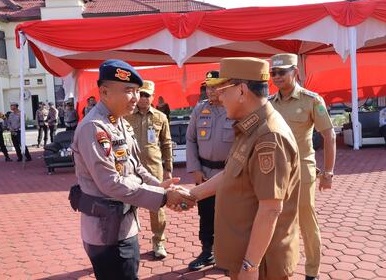 Bupati Rohil, Bistamam, bersama Wakil Bupati Jhony Charles menghadiri Apel Gelar Pasukan Operasi Patuh Lancang Kuning 2025 yang digelar di halaman Mapolres.