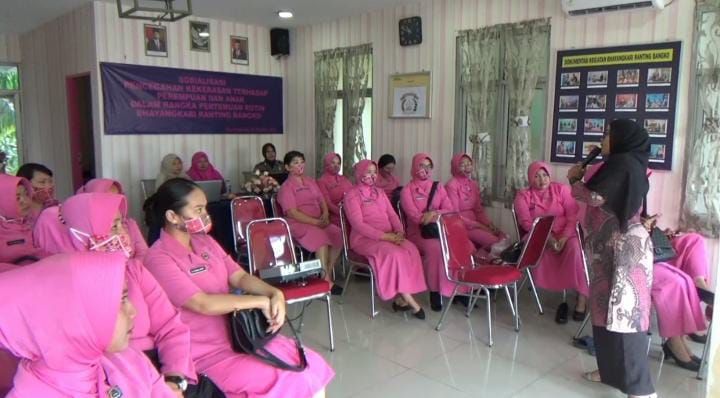 Bhayangkari Ranting Bangko, Rokan Hilir (Rohil) sosialisasi pencegahan kekerasan terhadap perempuan dan anak..