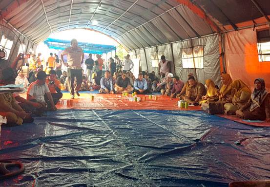 Kepala BPBD Riau, Edy Afrizal, bersama Kepala Basnaz dan Kadiskes Riau menyalurkan bantuan kepada warga Rokan Hilir yang terkena musibah.